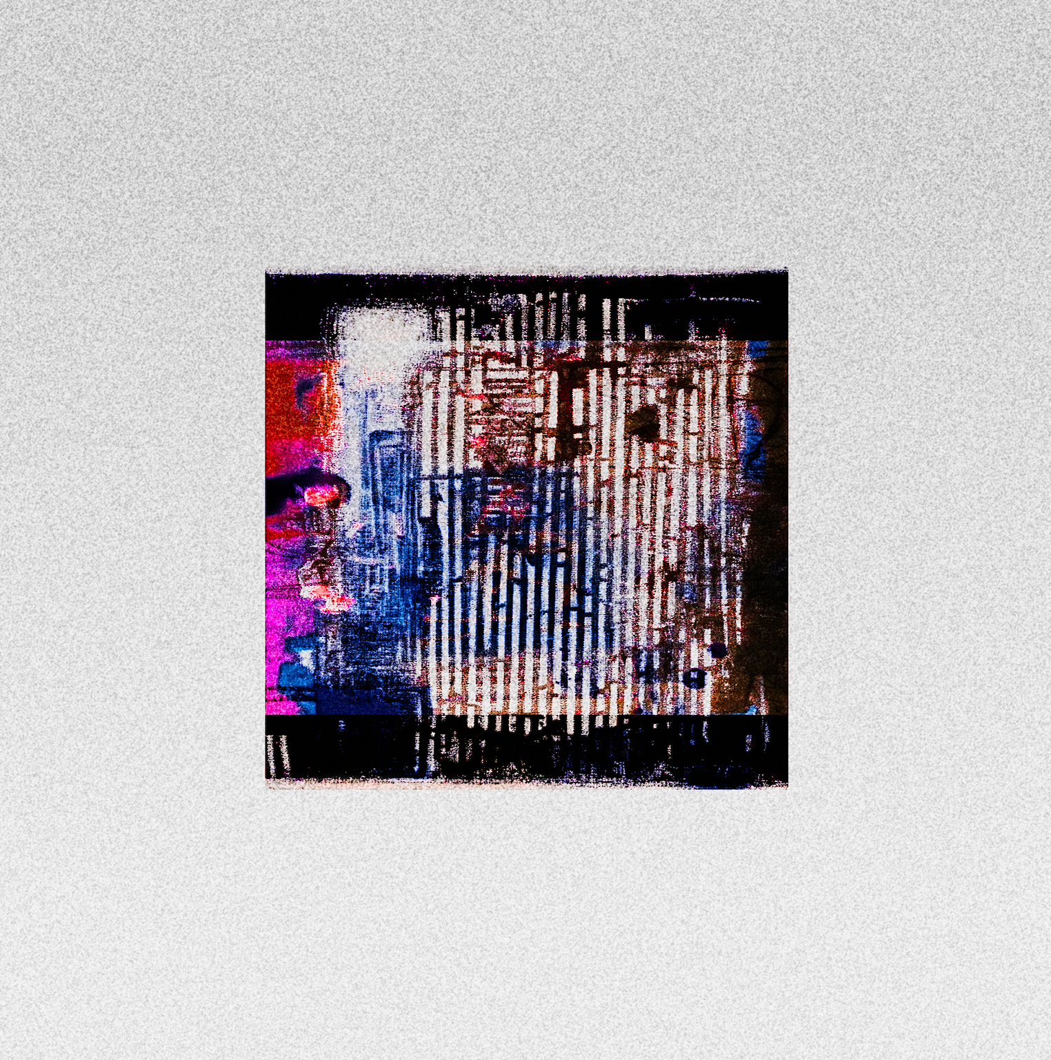 This image appears as a stalled transmission—layers of signal compressed into bands, pauses, and noise. Structure flickers without settling, as if the image is caught mid-recall, revealing the strain between what tries to appear and what slips back into static.